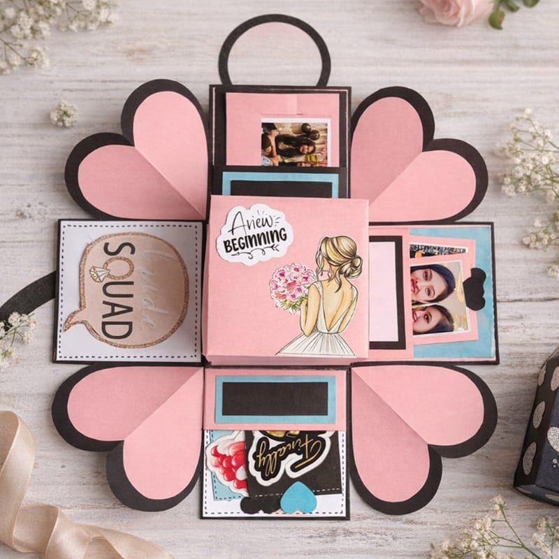 With 24 customized photos, meaningful write-ups, and decorative tags, this explosion box is a perfect way to surprise the bride-to-be and make her feel extra special. Every element can be personalized according to your preferred theme, colors, and occasion, making it a one-of-a-kind keepsake.